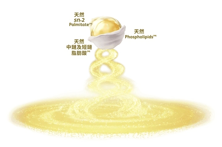 - 源自液態全脂牛奶。荷蘭皇家美素佳兒®4號每100克配方奶粉約含1.6克sn-2 Palmitate、0.18克 Phospholipids、0.86克MCFA中鏈脂肪酸及0.40克SCFA短鏈脂肪酸 。