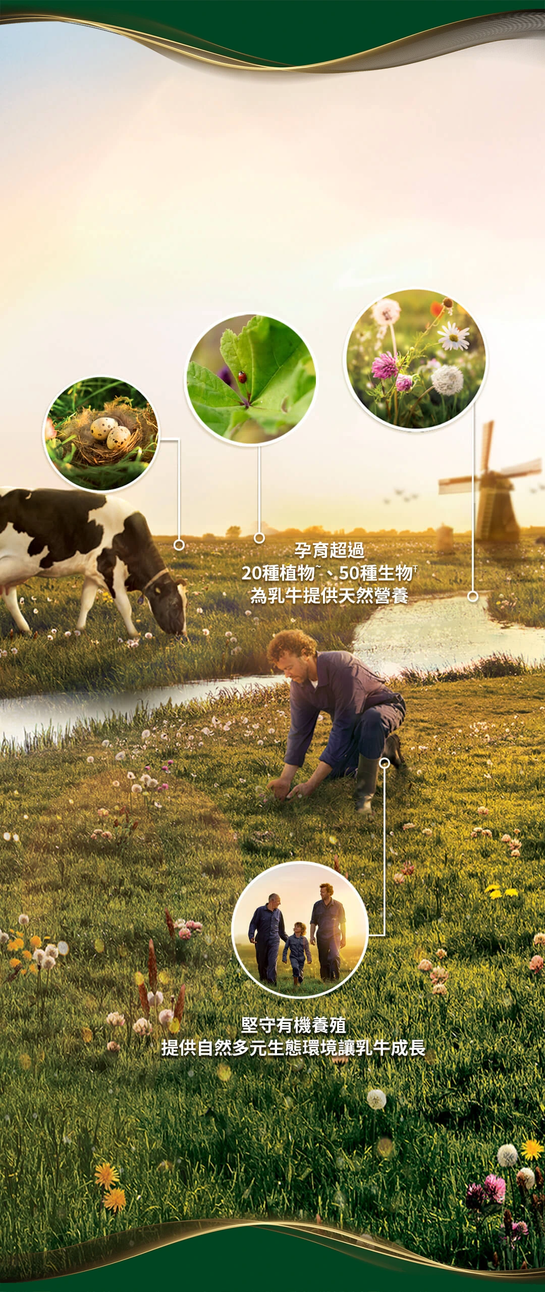 - 根據截至2023年7月的市場資料,有機荷蘭皇家美素佳兒®是香港市場上唯一奶源源自採用「生物多樣性監察系統」的荷蘭有機自家農場的成長配方奶粉產品。