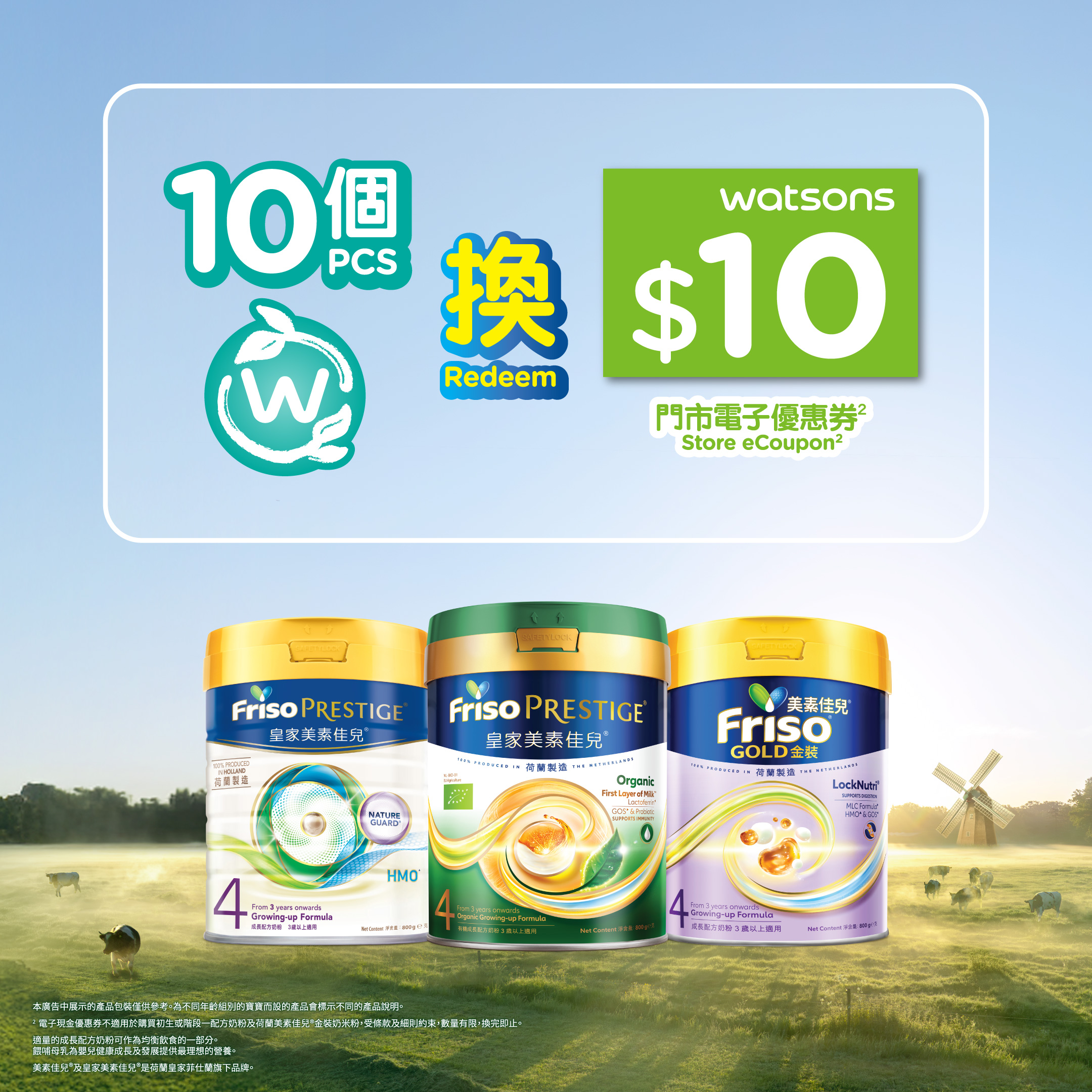 2電子現金優惠券不適用於購買初生或階段一配方奶粉及荷蘭美素佳兒®金裝奶米粉,受條款及細則約束,數量有限,換完即止。