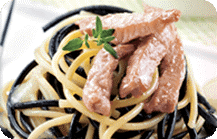 墨魚汁意大利粉約70克,意大利粉約70克,豬柳絲約100克,橄欖油1茶匙