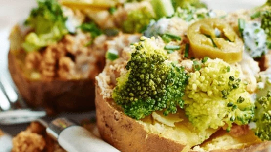 薯仔1個,西蘭花(切件快蒸),車打芝士* ½杯(磨碎),車厘茄5粒(切半) ,蔥粒2湯匙,橄欖油1 茶匙,胡椒及鹽少許(調味),牛油 1小片
