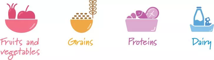 確保每餐都涵蓋四大種類的食物:蔬果、穀類、蛋白質及奶類食品。